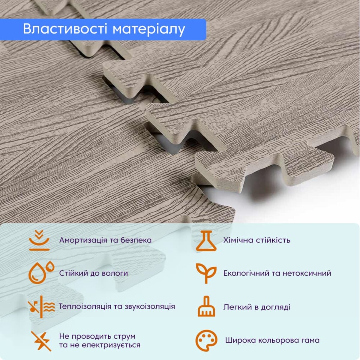 Підлогове покриття має ефект теплозбереження та служить як шумоізоляція та вібропоглинаюче.